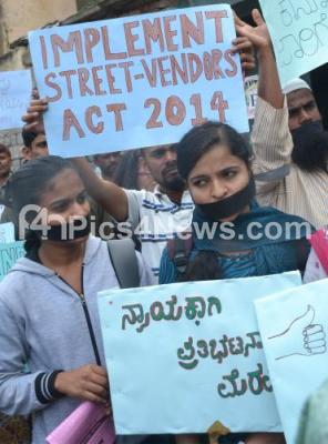 Event Description : Members of roadside vendors association seen protesting against the atrocities of police department on street vendors at Shivajinagar play ground, in Bengaluru on Thursday 3rd December 2015