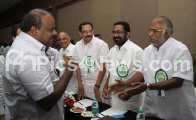 Photo Caption : HD Kumarswamy, Karnataka State JDS President greeting JDS party leaders from other states during the JDS National Executive Committee meeting at Hotel Lalit Ashok, in Bengaluru on Thursday 3rd December 2015