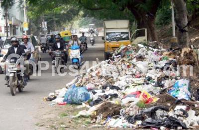 Photo Caption : Garbage being dumped on road side at Kumara Krupa Road, in Bengaluru on Tuesday 8th December 2015