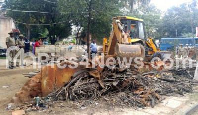 Photo Caption : Demolition drive at Banaswadi, OMBR Layout and recovered 2 acres of land, valued 30 crores, in Bengaluru on Wednesday 9th December 2015