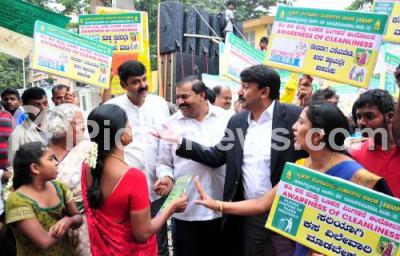 Photo Caption : MLA Akhanda Srinivas with Councilor Netra Narayan, BBMP commissioner Kumar Nayak and others partake in awareness rally on garbage segregation at Kaval Byrasandra Ward no 32, in Bengaluru on Wednesday 9th December 2015