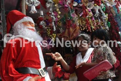 Photo Caption : People buying decoration materials for the upcoming Christmas Festival at Shivajinagar, in Bengaluru on Friday 11th December 2015