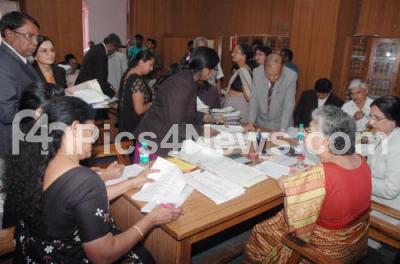 Photo Caption : Justice B V Nagarathana disposing cases at bench no 5, mostly insurance claims Long pending cases files being sorted out with anxious litigants waiting for the bench proceeding to commence for settlement of pending cases at a conciliatory meet at the National Lok Adalat, to dispose Off pending cases at a conciliatory bench at High Court, in Bengaluru on Saturday 12th December 2015