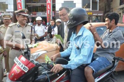MA Saleem, Traffic Police Commissioner with Sudarshan Ballal, Director Manipal Hospitals seen distributing brochures during the campaign against Drunken Driving at Brigade Road Junction, organised by Bengaluru Traffic Police, in Bengaluru on Saturday 12th December 2015