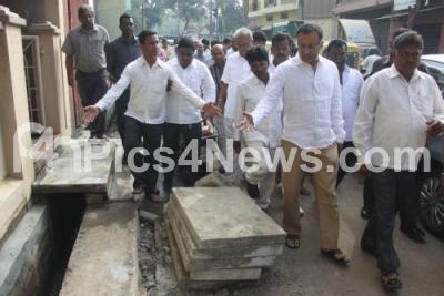 Photo Caption : Minister Dinesh Gundu Rao seen inspecting the development works at Okalipuram during his inspection drive, in Bengaluru on Monday 14th December 2015