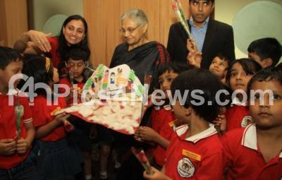 Event Description : School Children from Heritage Kids School greeted and sang rhymes on the eve of Xmas and New Year with Sheila Dikshit, senior congress leader and Ex CM of Delhi at Kumar Krupa Guest House, in Bengaluru on Monday 14th December 2015