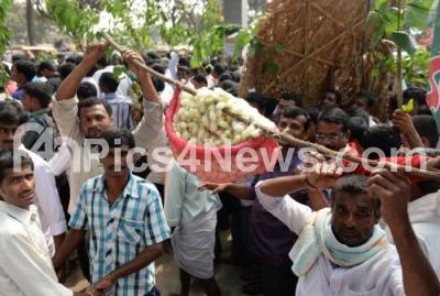 Silk farmers participated in a protest rally from Bengaluru City Railway Station to Freedom Park against central government and fulfill their various demands, in Bengaluru on Tuesday 15th December 2015