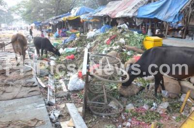 Cows have a feast in the garbage piled up at Madiwala market, in Bengaluru on Tuesday 15th December 2015