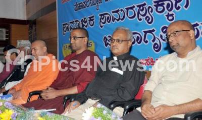 Photo Caption : Sri Veerabhadra Channamalla swamiji with Bhodidatta Banteja, Syed Safi Ulla Saheb, Dinesh Ameen Mattu, BM Haneef and others at the convention programme by Dalita Sangarsha Samiti at Gandhi Bhavan, in Bengaluru on Thursday 17th December 2015