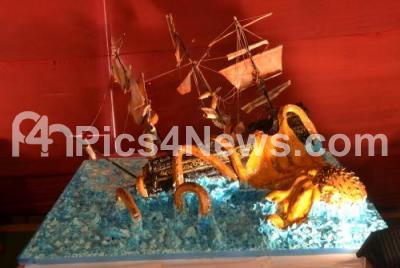 Visitors getting a glimpse of the Lost City of Atlantis, Story Book Cake, Smurfs Village Cake and various others cakes at the 41st annual cake show at St Josephs Indian high school grounds, organised by National consumer fair for the upcoming Christmas and New Year celebrations, in Bengaluru on Thursday 17th December 2015