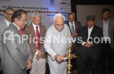 Event Description : Minister RV Deshpande with Asad Wasi, Director, N Sreeramaiah, Executive Director, Resurgent India, AC Sahu, General Manager, SIDBI, S Babu, President, Nilaya Mitash, Secretary, MSME and MINES,GOK and others inaugurating the 4th Karnataka Manufacturing Summit 2015, actualising Make in India to Make In Karnataka, organised by Assocham at Hotel Le Meridien, in Bengaluru on Friday 18th December 2015