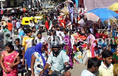Photo Caption : People seen busy shopping for the Christmas festival at Shivaji Nagar, in Bengaluru on Sunday 20th December 2015