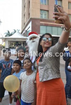 Photo Caption : People seen having a good time with Santa Claus on the occasion of Christmas festival at UB City, in Bengaluru on Monday 21st December 2015