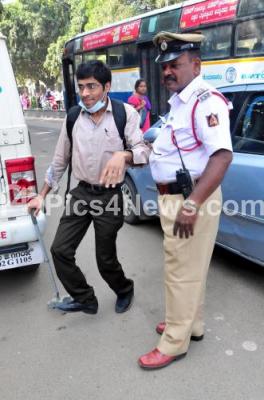 Event Description : A traffic police helps a physically challenged person to reach Kote Venkateshwara Temple, in Bengaluru on Monday 21st December 2015
