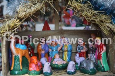 Photo Caption : Christmas dolls being displayed at shops outside the St Marys Basilica Church in Shivajinagar on the eve of Christmas Festival, in Bengaluru on Thursday 24th December 2015