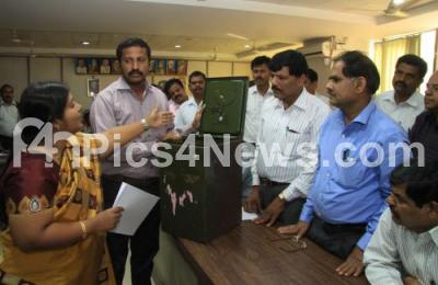 Event Description : Council election officers getting prepared to depart to their respective council election centers with the ballot boxes at Revenue Bhavan, in Bengaluru on Saturday 26th December 2015