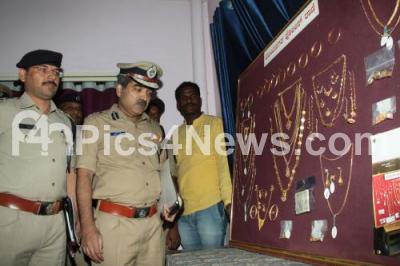 Event Description : Pratap Reddy, IPS and Additional Commissioner of Police, West and Labhu Ram, IPS, DCP, West seen inspecting the recovered valuables and jewellery during the recovered property parade press conference at Upparpete Police Station, in Bengaluru on Saturday 26th December 2015