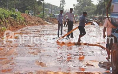 Event Description : A worker seen pouring water at the new Okalipuram flyover and underpass work at Okalipuram, in Bengaluru on Tuesday 29th December 2015
