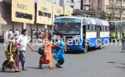 Photo Caption : People seen breaking the rules by walking on the path of the BMTC buses, which was banned for public movement due to the recent accidents and lack of BMTC staff to control the people at BMTC bus stand at Majestic, in Bengaluru on Friday 1st January 2016