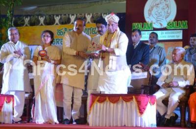 Photo Caption : Home Minister Rajnath Singh being felicitated by Ananth Kumar, Union Minister, Tejaswini Ananth Kumar and others during the Adamya Chetana Seva Utsav 2015 and 2016 at National High School Grounds, Basavanagudi , in Bengaluru on Friday 1st January 2016