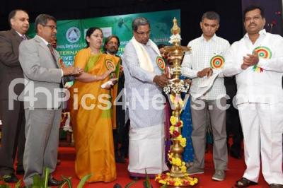 Event Description : CM Siddaramaiah with Minister Krishna Byregowda and Parameshwar Naik, Dr Indrajit Banerjee, Director, Knowledge Societies Division, UNESCO, Dr H Shivanna, Vice Chancellor UAS and others inaugurated the 8th GCRA International Conference on “Innovative Digital Applications for Sustainable Development” at GKVK, in Bengaluru on Tuesday 5th January 2016