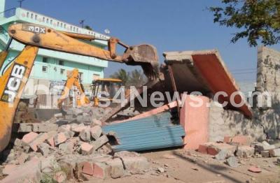 Photo Caption : BDA demolition drive of illegal occupancy at Malagala Papareddypalya, Nagarbhavi ring road, in Bengaluru on Tuesday 5th January 2016