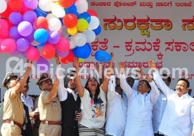 Photo Caption : Home Minister Parameshwar inaugurating the 27th National road safety week 2016 at Kanteerva stadium in the presence of Information Minister Roshan Baig ,Assistant commissioner Traffic M A Saleem and others were present on the occasion, in Bengaluru on Saturday 9th January 2016
