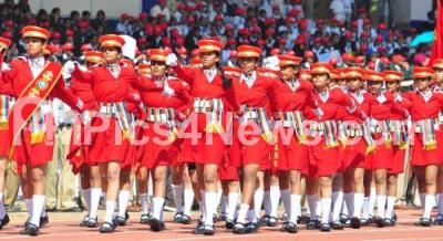 Photo Caption : Home Minister Parameshwar takes the guard of Honor from the School children on the 27th National road safety week 2016 at Kanteerava stadium in Bengaluru on Saturday, Information Minister Roshan Baig ,Assistant commissioner Traffic MA Saleem and others were present on the occasion, in Bengaluru on Saturday 9th January 2016