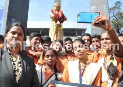 Photo Caption : Students seen taking selfie in front of the Swamy Vivekananda Statue on the occasion of 153rd Swamy Vivekananda Jayanthi at Yeshwanthpur, in Bengaluru on Tuesday 12th January 2016