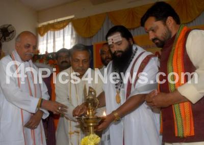 Photo Caption : Working president of Vishwa Hindu Parishad Pravin Togadia with Anand Guruji, Shenoy, Sr Secretary, Rajesh Pandey and Surender Kumar Jain and other members inaugurating the Bajarangadal National Convention 2016 at Sardar Patel Bhavan, in Bengaluru on Saturday 16th January 2016