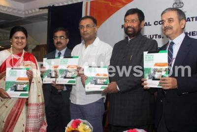 Event Description : Union Minister Ram Vila Paswan with Minister Dinesh Gundu Rao and others seen releasing a brochure during the Southern Regional Consultation meeting on Food and Civil Supplies at Hotel Capitol, in Bengaluru on Saturday 16th January 2016