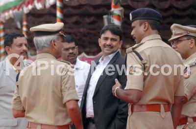 Photo Caption : NS Megharik, Commissioner of Police Bengaluru city discussing with BBMP Commissioner Kumar Naik, V Shankar, DC Bengaluru Urban District, Charan Reddy, Joint Commissioner of Police and Sandeep Patil, DCP after reviewing the parade during Republic Day Full Dress Rehearsal Parade at Manekshaw Parade Grounds, in Bengaluru on Sunday 24th January 2016