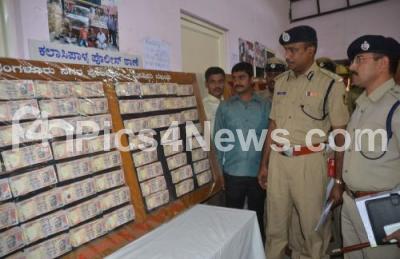 Photo Caption : Charan Reddy, Additional Commissioner of Police Law and Order with DCP Labhuram seen inspecting the recovered valuables by west zone division police during a press conference at Upparpet Police Station, in Bengaluru on Monday 1st February 2016