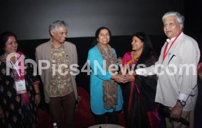 Photo Caption : Actress Suhasini being greeted by Jayamala and Rajendra Singh Babu during the 8th Bengaluru International Film Festival program at Orion Mall, in Bengaluru on Monday 1st February 2016
