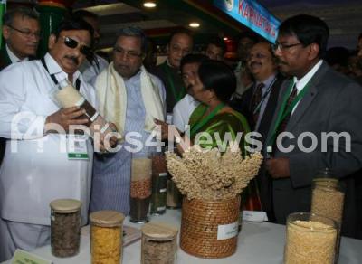 Photo Caption : CM Siddaramaiah with Minister Roshan Baig seen going through the exhibition stalls on the 2nd day of “Invest Karnataka 2016†Global Investor Meet at Bangalore Palace Grounds, in Bengaluru on Thursday 4th February 2016