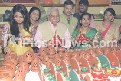 Event Description : Dr Chandrashekhar Kambar with Actress Vyshali Deepak, Mohammed Mohsin, IAS and others seen inaugurating the rural handicraft store “Nammura Angadi” at Girinagar, in Bengaluru on Wednesday 10th February 2016