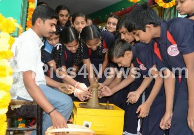 Photo Caption : Children seen making clay pots during the inauguration of the rural handicraft store “Nammura Angadi†at Girinagar, in Bengaluru on Wednesday 10th February 2016