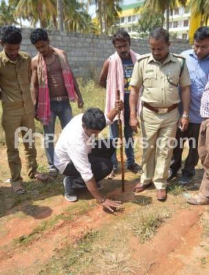 Forest officials seen inspecting the leopard pugmarks which were found behind the Vibgyor school at Kundalahalli, near White field, 2 days after a leopard entered the Vibgyor school and was caught successfully, people residing in the area claim to have seen 2 more leopards, in Bengaluru on Wednesday 10th February 2016