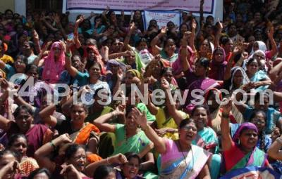Event Description : Anganwadi workers and helpers association staged a protest in demand to solve problems of the Anganwadi workers in the coming state budget, the protest was held at Town Hall, in Bengaluru on Monday 15th February 2016