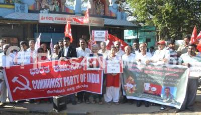 Event Description : Members of Communist Party of India staged a protest against ABVP for the arrest of Kanhaiya Kumar, president of JNUSU and the victimization of JNU students in New Delhi, the protest was held at SBM Circle, in Bengaluru on Monday 15th February 2016