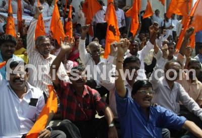 Event Description : Members of Bharatiya Mazdoor Sangh staged a protest to fulfill their various demands at Town Hall, in Bengaluru on Wednesday 24th February 2016