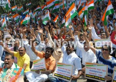 BJP members held a “Walk for Nation” from South End Circle to Town Hall with the tricolor flags in their hand in protest against the terrorists and anti nationalists, who are creating problems and to give respect to the martyred soldiers, in Bengaluru on Wednesday 24th February 2016