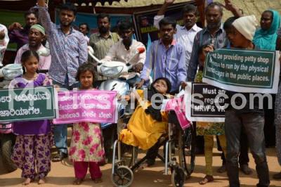 Members of Vikalachetana Abhyudaya Vedike and Handicapped people staged a protest to fulfill their various demands at Freedom Park, in Bengaluru on Thursday 25th February 2016