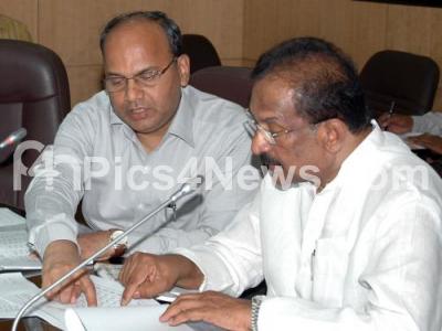 Event Description : Minister KJ George seen at the Pre Budget 2016 and 2017 meeting with the BBMP, BWSSB, TP, UD, departments regarding various developments for the Bengaluru City, on Saturday 27th February 2016