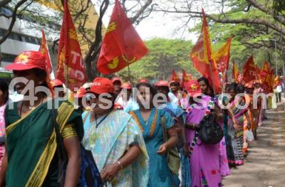 Photo Caption : Trade Union Co Ordination Centre members rally from SBM Circle to Town Hall during the 9th National Conference, in Bengaluru on Sunday 28th February 2016