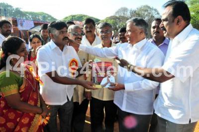 Photo Caption : Mayanna seen interacting with V Somanna at the Kannada Sahitya Parishat Elections, in Bengaluru on Sunday 28th February 2016