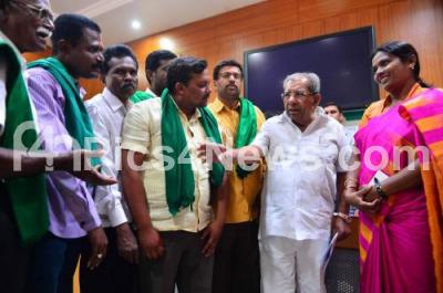 Photo Caption : Minister Shamanur Shivashankarappa seen interacting with Mango farmers during a workshop at Lalbagh, in Bengaluru on Tuesday 1st March 2016