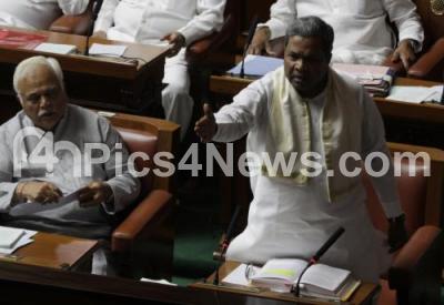 CM Siddaramaiah seen responding to the accusations made by the opposition regarding the gifted watch issue during the Assembly Session at Vidhan Soudha, in Bengaluru on Tuesday 1st March 2016