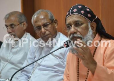 Photo Caption : Cardinal Baselios Cleemis with Arch Bishop Andrews Thazhath and others seen addressing a press conference on the 32nd CBCI Plenary Assembly at St John Medical College, in Bengaluru on Tuesday 1st March 2016