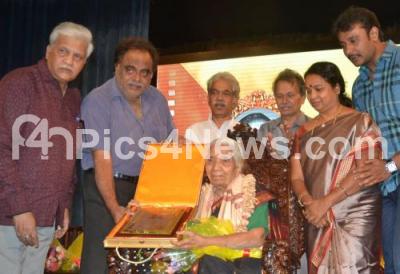 Photo Caption : Ministers Ambareesh and Umashree with Actor Darshan, Baraguru Ramchandrappa and others felicitated SK Padmadevi during the felicitation program to Kannada Film Artistes at Ambedkar Bhavan, organised by Karnataka Film Academy, in Bengaluru on Thursday 3rd March 2016